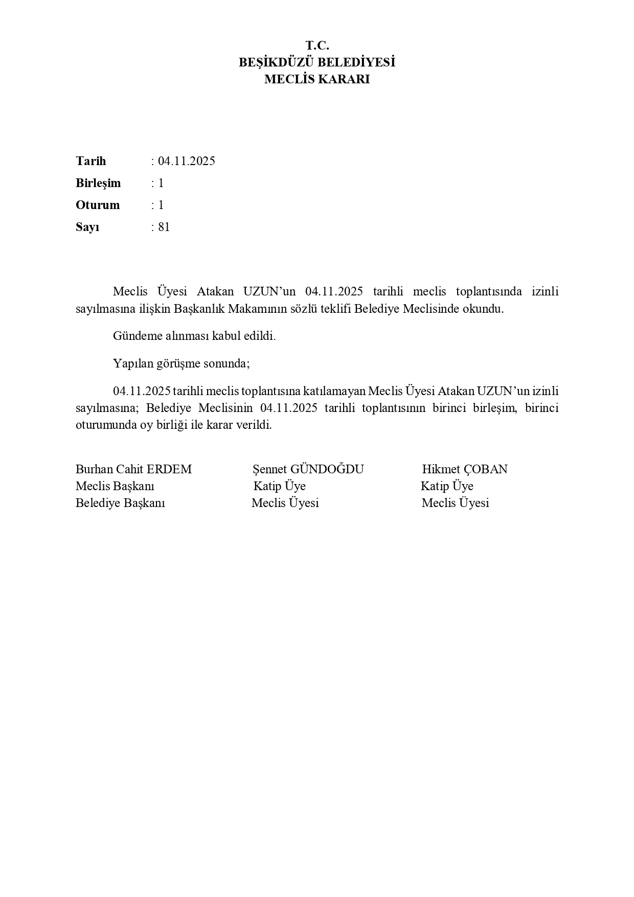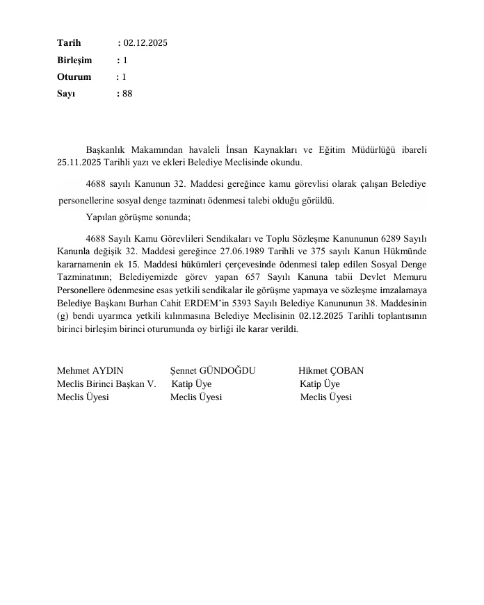 2025 KASIM AYI MECLİS KARARLARI
