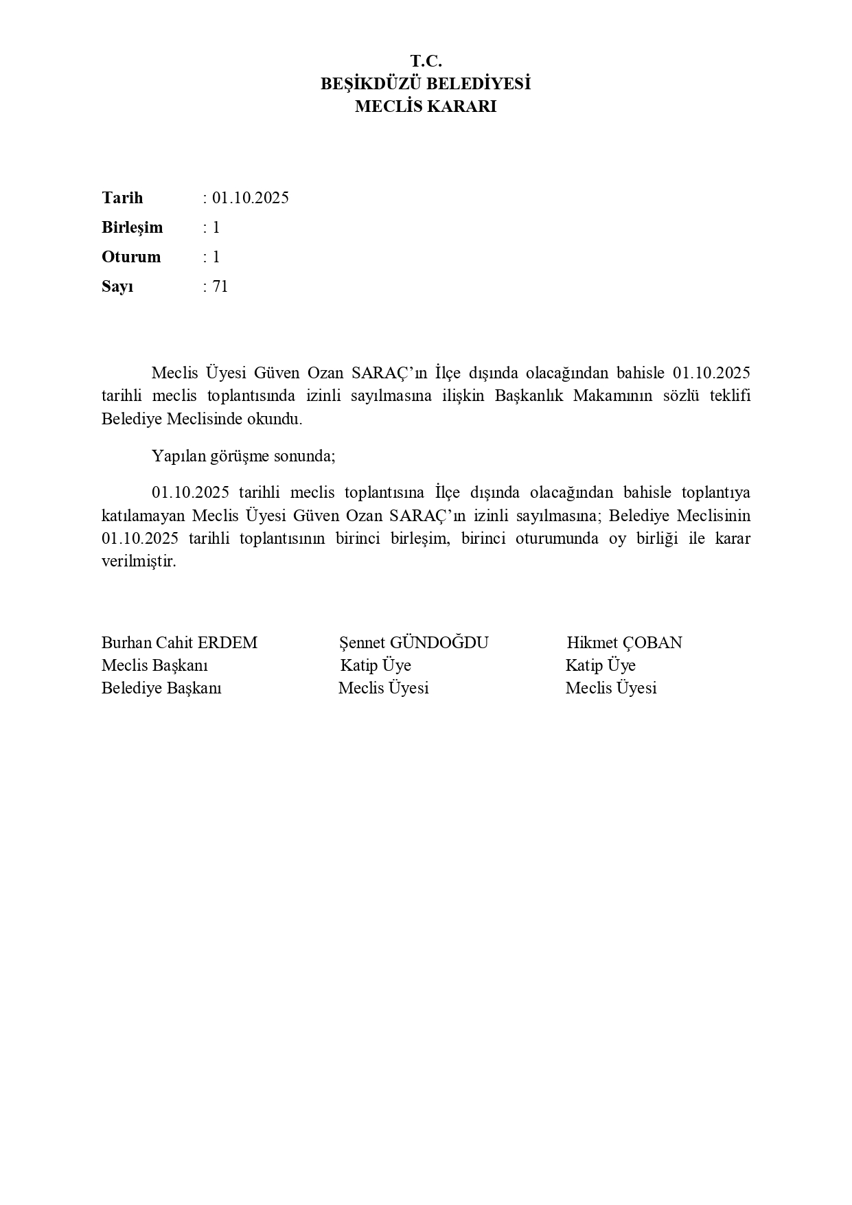 2025 EKİM AYI MECLİS KARARLARI